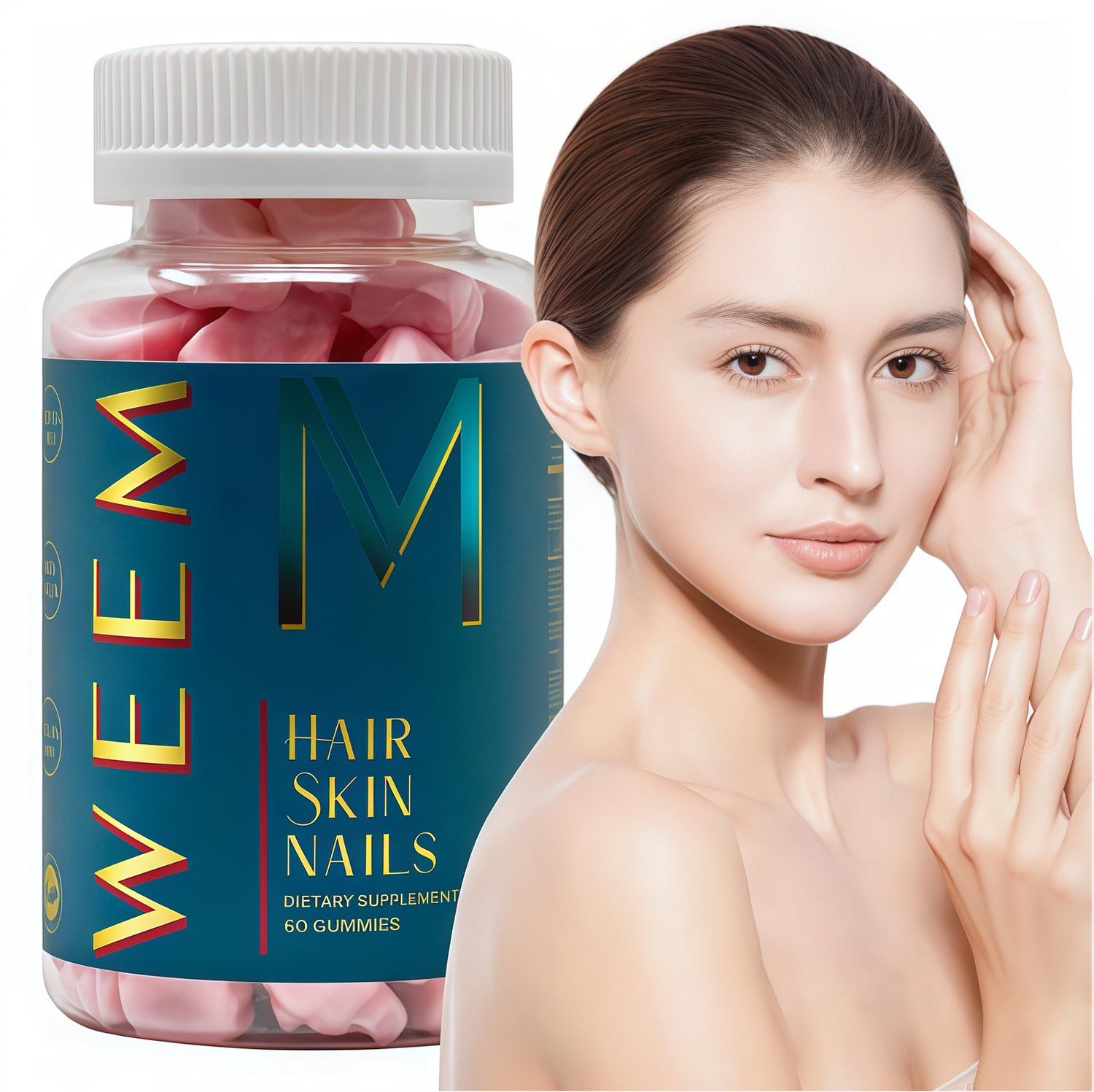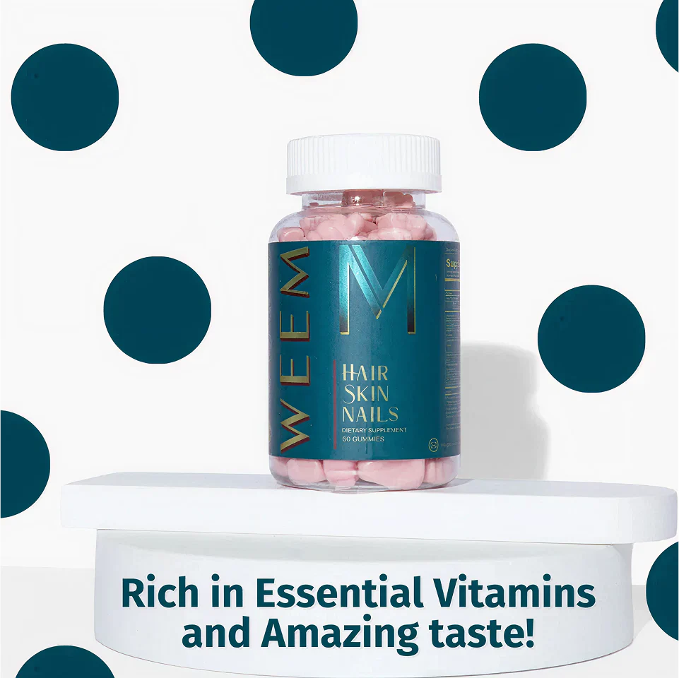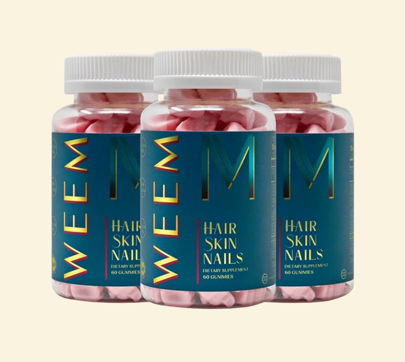 Why wait months to see results when your beautydeserves support now? WEEM™ Hair, Skin & NailsGummies are formulated with a high-potency blend ofBiotin, Vitamins A, C, E, and Zinc to deliver visibleimprovements you can notice in weeks, not months.